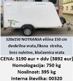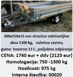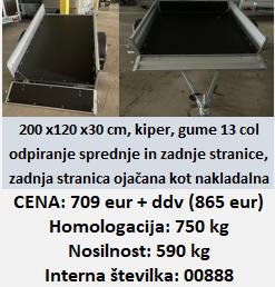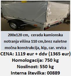 Zaradi možnih napak pri vnosu podatkov oziroma njihovi objavi ali tehničnih sprememb pri posameznih serijah proizvodnje prikolic za točne podatke preverite pri prodajalcu! CENE VELJAJO ZA PRIKOLICE NA ZALOGI !