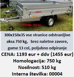*********ENO OSNE IN DVO OSNE PRIKOLICE BREZ NALETNE ZAVORE DO 750 KG ********